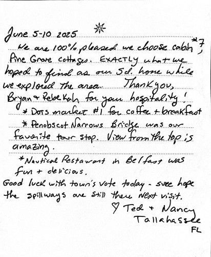this place exceeding our expectations! the owners are very friendly and knowledgeable of the area, even providing us with a whole list of restaurants in the area which was super helpful. the cabin was beautiful and immaculate and the bed was the most comfortable bed i’ve ever slept on! the bath towels were also great quality. it is in such a convenient location, just minutes from Camden and Camden Hills State Park that had beautiful views. i loved being close to Camden, but also able to escape the town and relax at the quiet cabin. there are 3 propane fire pits on the grounds that are great at nighttime. there is also an antique store right next door that sells homemade baked goods. we will DEFINITELY be staying at Pine Grove Cottages again and recommend this place to anyone who wants to stay in the Camden area.